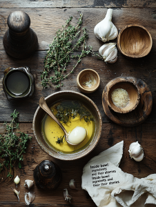 Step 2: Mix a marinade of lemon juice, chopped fresh herbs (like tarragon and thyme), and a splash of olive oil.