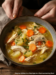 • Shredded chicken: I love using leftovers—easy and boosts flavor. Swap with cooked turkey for a twist.: Provides richness and protein, and absorbs all the flavors from the broth.