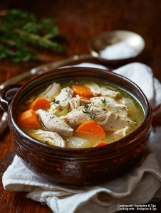 This chicken soup started as a way to clear out the fridge but became something I crave on chilly days. It’s rooted in the simple practice of building flavor slowly, letting each layer develop. That smoky depth from roasted chicken skins and caramelized veg makes each spoonful richer than it looks.