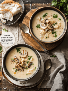 This creamy mushroom chicken soup combines earthy mushrooms, tender chicken, and velvety cream to create a comforting, rich broth. The dish involves sautéing, simmering, and gentle stirring to develop layered flavors and a smooth, inviting texture. It’s perfect for chilly evenings, offering a warm, satisfying experience with a hint of herbal brightness.